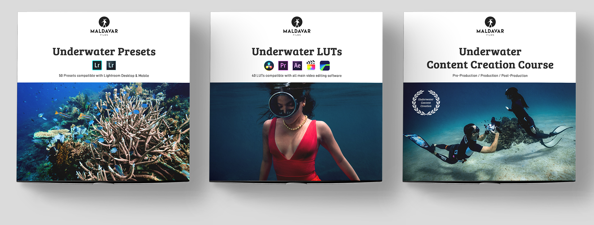 50 Underwater Lightroom Presets + 40 Professional Underwater LUTs + 1 Underwater Content Creation Online Course